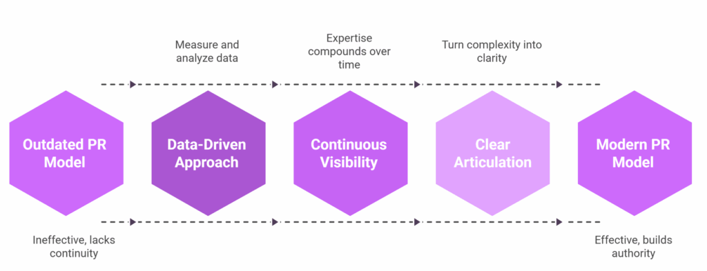 The old PR model—press releases, one-time placements, vanity coverage—doesn’t work anymore because it wasn’t designed for continuity. It created spikes of attention, not systems of visibility.